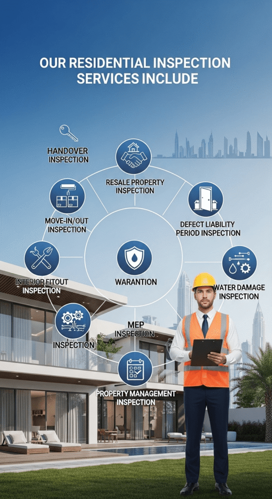 - MEP Inspection – Detailed checks of Mechanical, Electrical, and Plumbing systems.